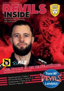 DEVILS INSIDE DAS SPEEDWAY MAGAZIN FÜR LANDSHUT Ausgabe 2 -2025- 11. Jahrgang WER KOMMT IN DIE TEUFELSKÜCHE? ULTRAPUR START GNIEZNO Gegnervorschau // Seite 5 Wir sind die Neuen // Seite 12, 16 Impressionen // Seite 20, 24 Termine // Seite 28